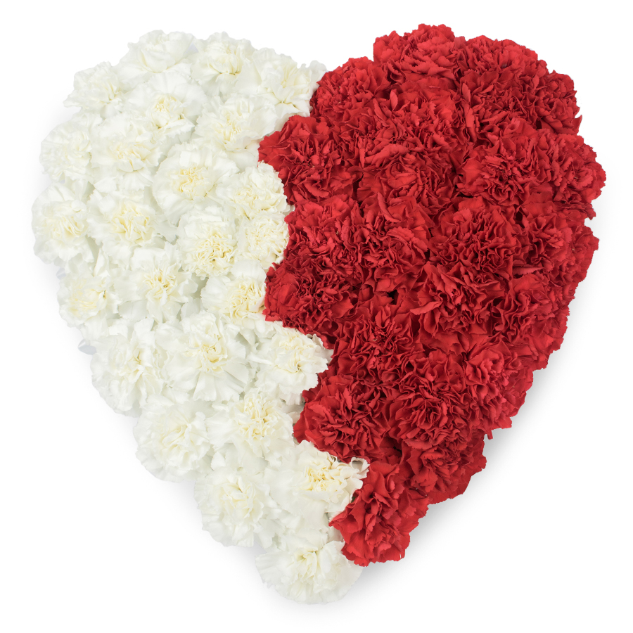 Our Charming Heart Bouquet showcases a beautiful fusion of white and red carnations arranged in a heart shape. This stunning bouquet is ideal for conveying deep emotions, making it a perfect choice for both sympathy and romantic gestures.